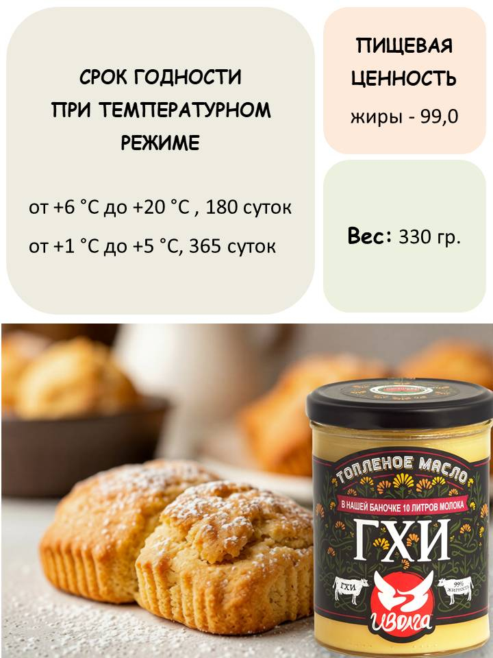 Топленое масло ГХИ «Иволга» — продукт, созданный по индийскому рецепту и прошедший специальную технологию очистки, благодаря чему он обладает множеством полезных свойств. Масло улучшает работу желудочно-кишечного тракта, способствует повышению иммунитета и является легким для усвоения источником ценных жирных кислот. Идеально подходит для приготовления пищи методом жарки, запекания, тушения, а также широко используется в косметических процедурах.