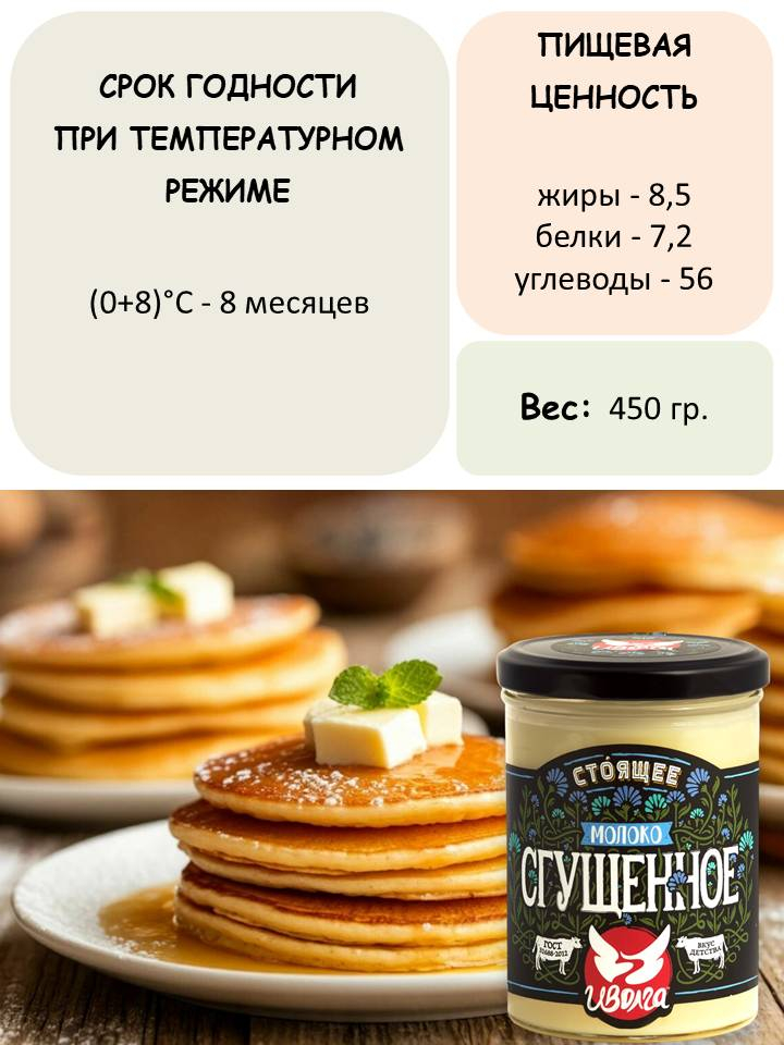 Сгущённое молоко «Иволга» бережно готовится по старинным рецептам, сохраняя всё лучшее, что дарит нам природа. Оно обладает насыщенным вкусом, плотной консистенцией и ароматом настоящего молока. Почему выбирают наше сгущённое молоко? Оно содержит только натуральные компоненты, без консервантов и красителей. Используйте сгущённое молоко «Иволга» для приготовления любимых десертов, напитков и выпечки!